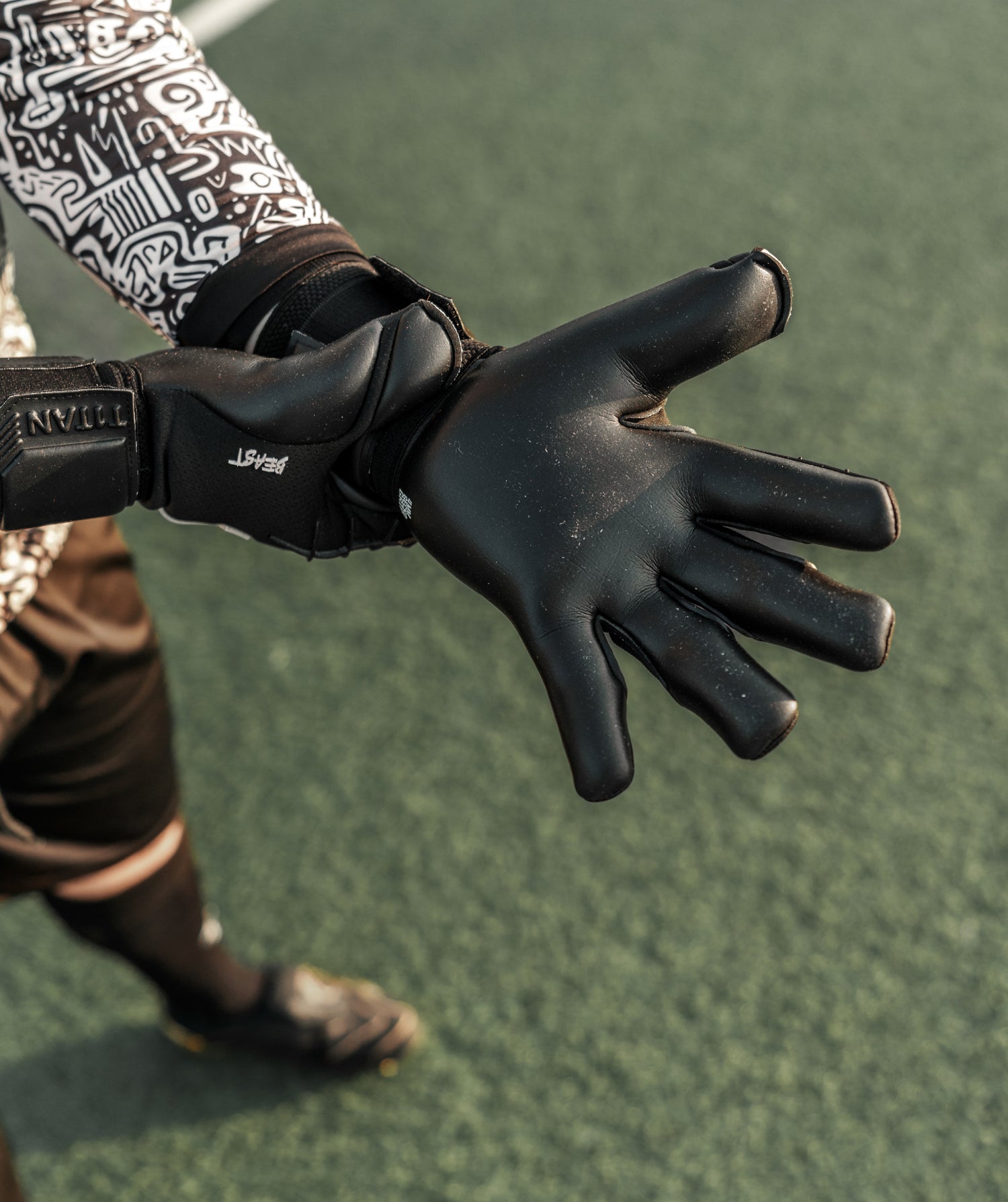 The Shadow Beast 3.0 is a professional-grade goalkeeper glove built for grass pitches. It features Gecko Grip latex on the catching surface for class-leading adhesion and control.